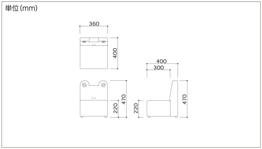サイズ/W360 x D400 x SH220 x H470 mm
